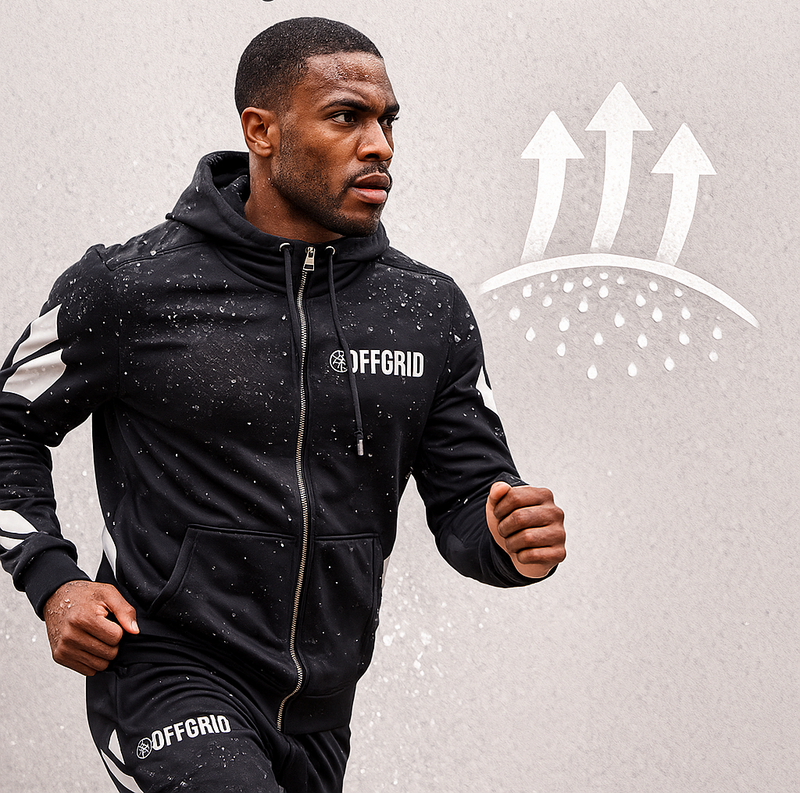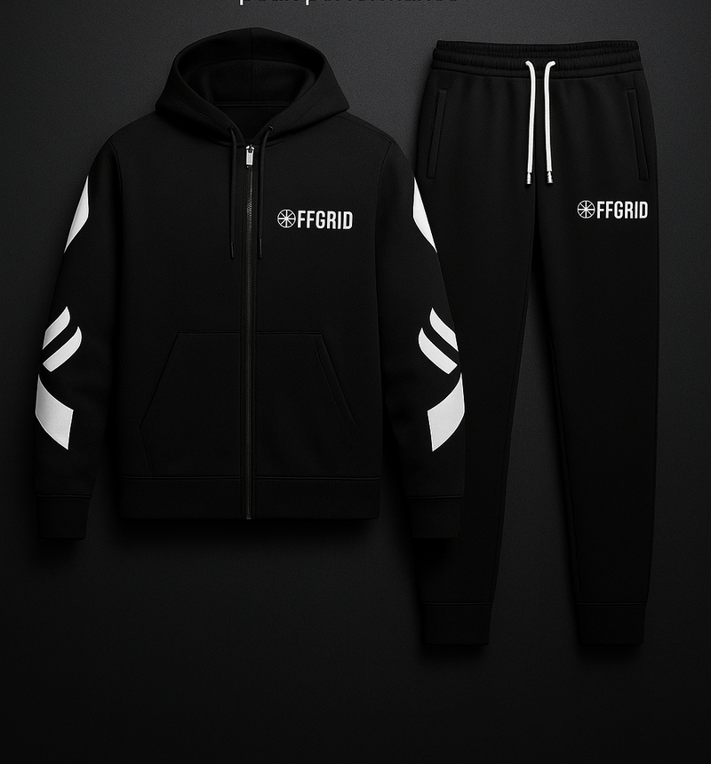 The OFFGRID Tracksuit was born from a simple idea: your clothes should work as hard as you do. Inspired by the modern lifestyle that blends fitness, travel, and everyday moments, we created a tracksuit that moves with you. Whether you're crushing your workout, catching a flight, or meeting friends for coffee, The Apex gives you the confidence to show up looking sharp and feeling comfortable. Crafted with premium fabrics and attention to detail, it's versatile enough for any occasion and built to last through every adventure.